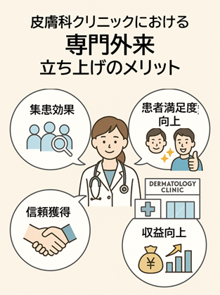 皮膚科クリニックにおける専門外来の設置は、患者への医療価値の提供と経営基盤の強化を同時に実現できる戦略です。